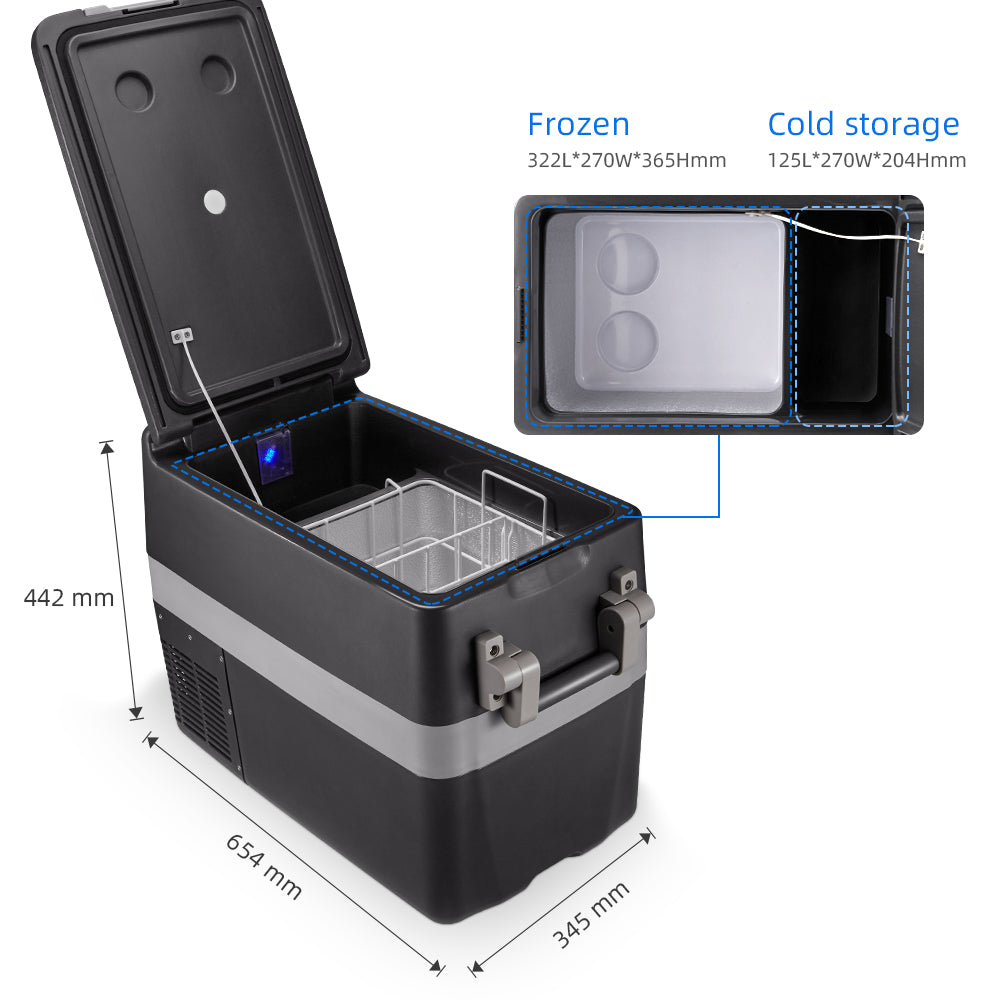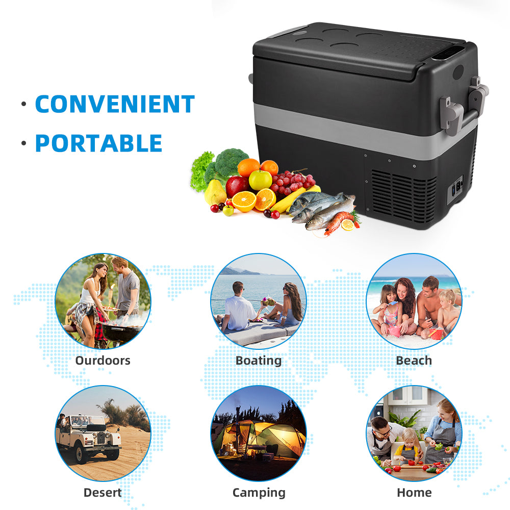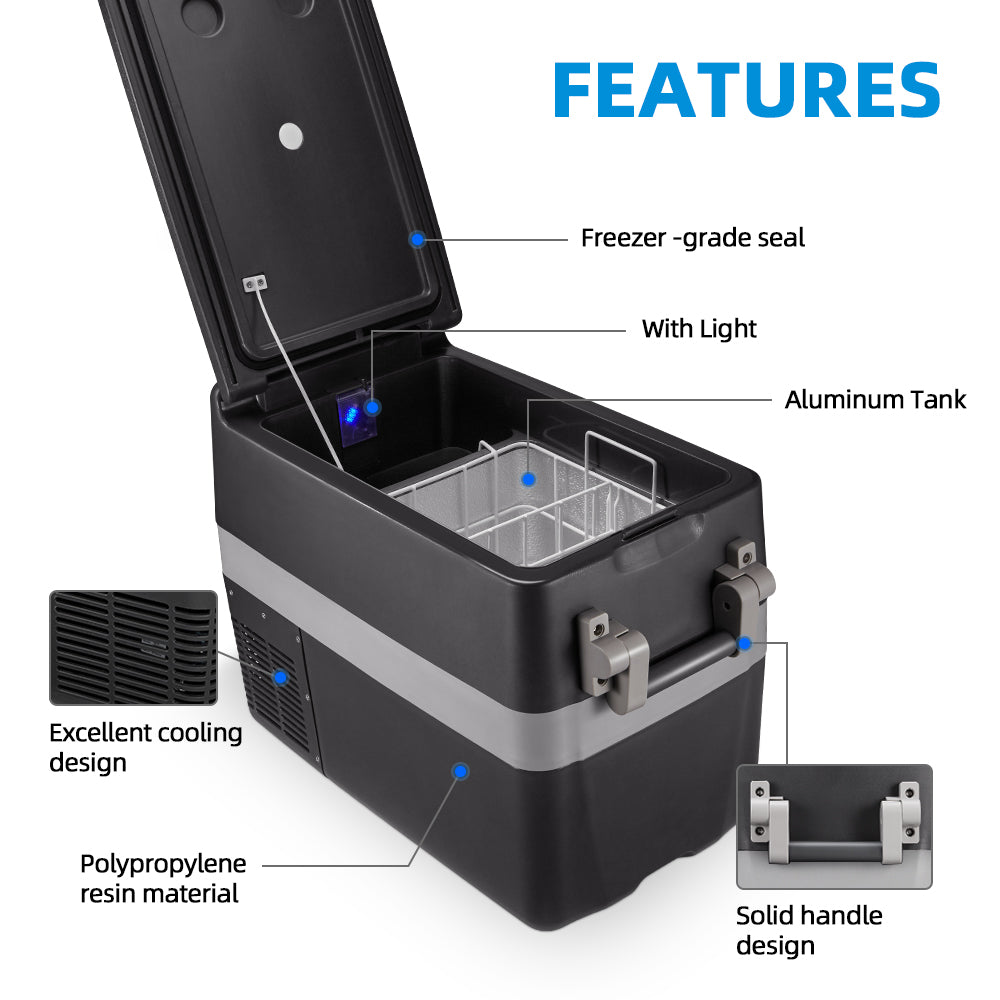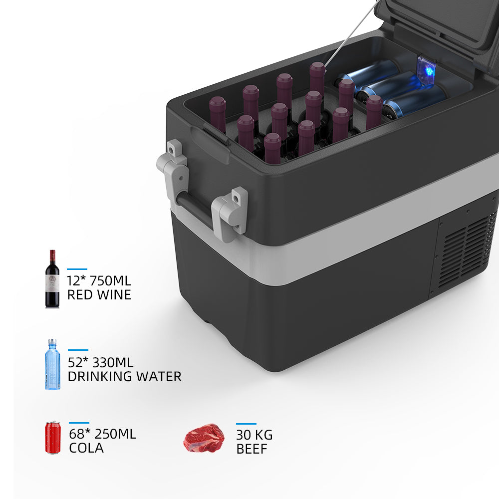 - Large Capacity: This portable fridge provides up to 40L space for food and drinks. You can store a great number of drinks, vegetables and fruit in it